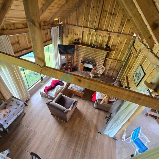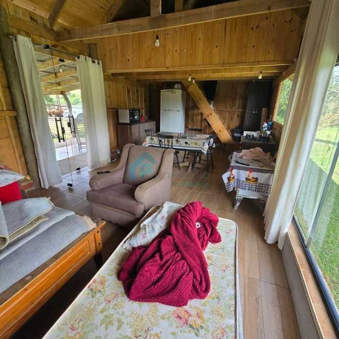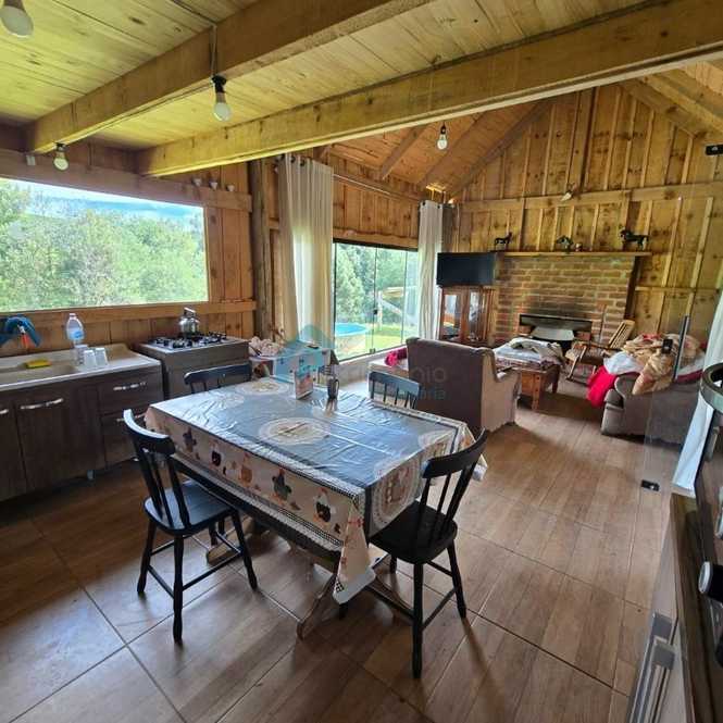 🏡 Casa de madeira aconchegante com lareira, ambientes integrados, 1 dormitório e pátio cercado